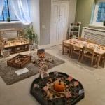 Inside, we provide separate rooms tailored to meet the needs of different age groups, including a baby room for ages 3 months to 2 years and a nursery room for ages 2 to 4 years. Additionally, our facilities include a large outdoor area, a separate dining room, a small focus room, a dedicated nappy room, and a separate office.