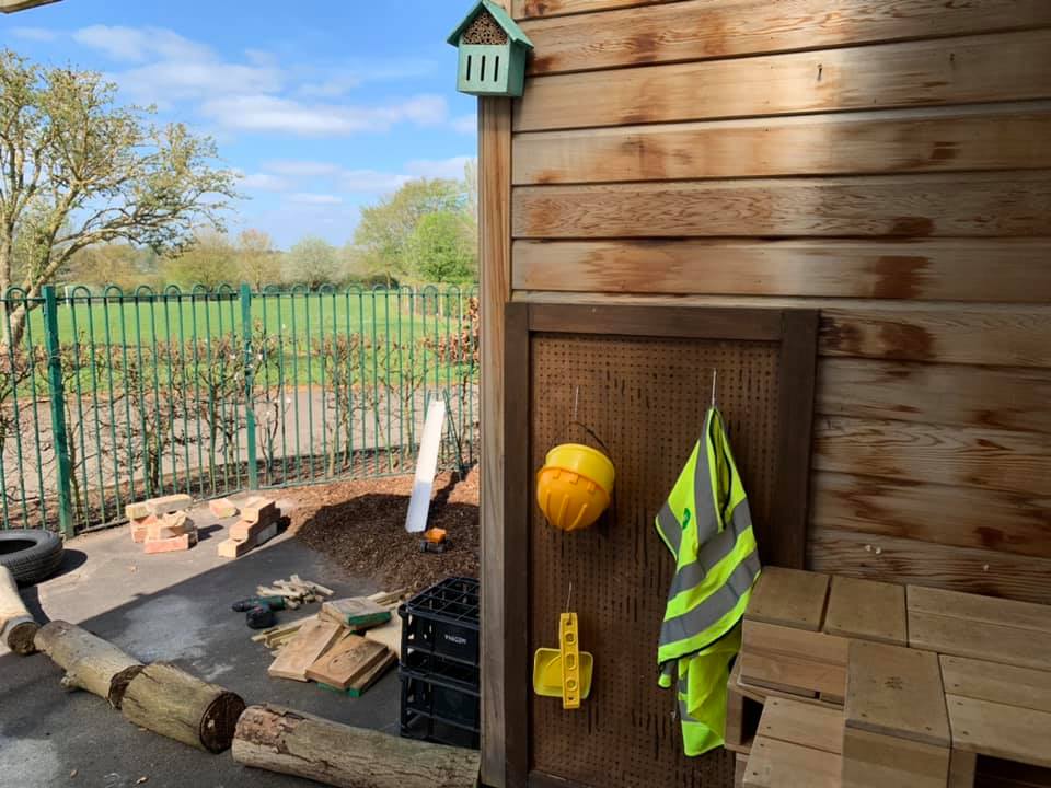 In our large outside area we have a sensory kitchen, a climbing frame, a planting area and a variety of different outdoor toys and resources.